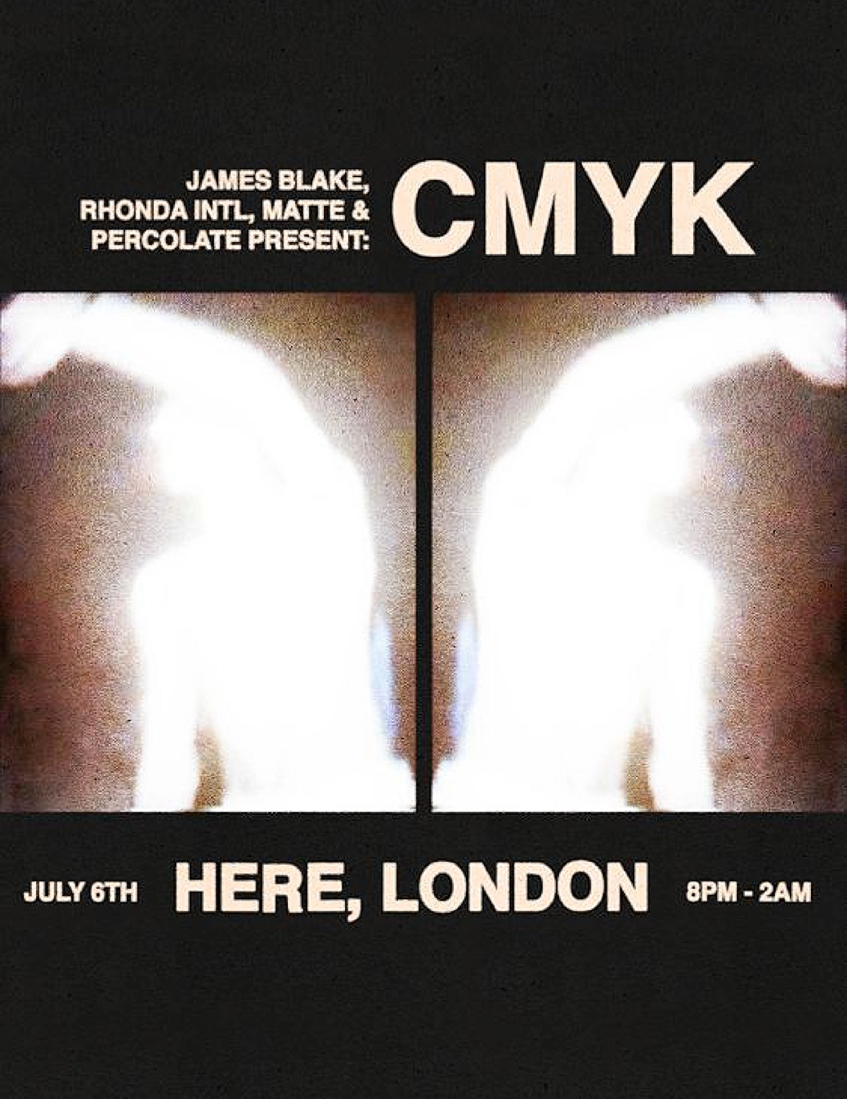 James Blake, Rhonda INTL, MATTE, Percolate presents CMYK